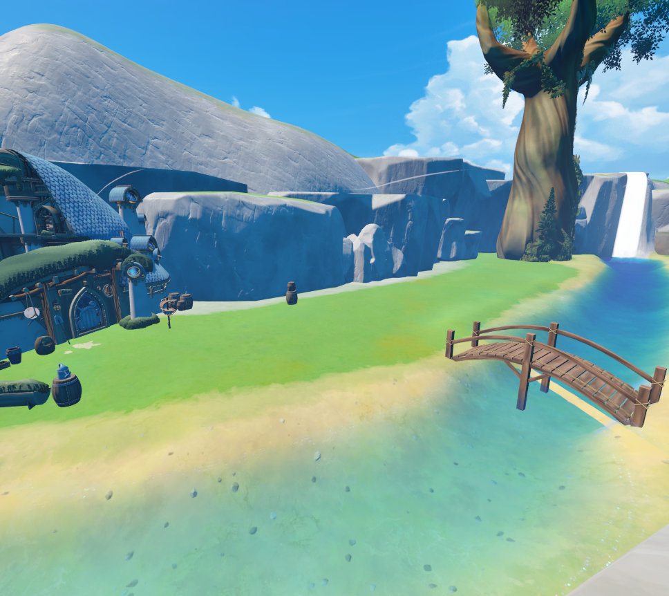 We also integrated the So Stylized Environment System, as the Stylarts Asset packs we began with did not include any landscape assets, which made building a more detailed environment challenging. The So Stylized System included solely landscape elements, including a sky system and water, which filled in most of those gaps.